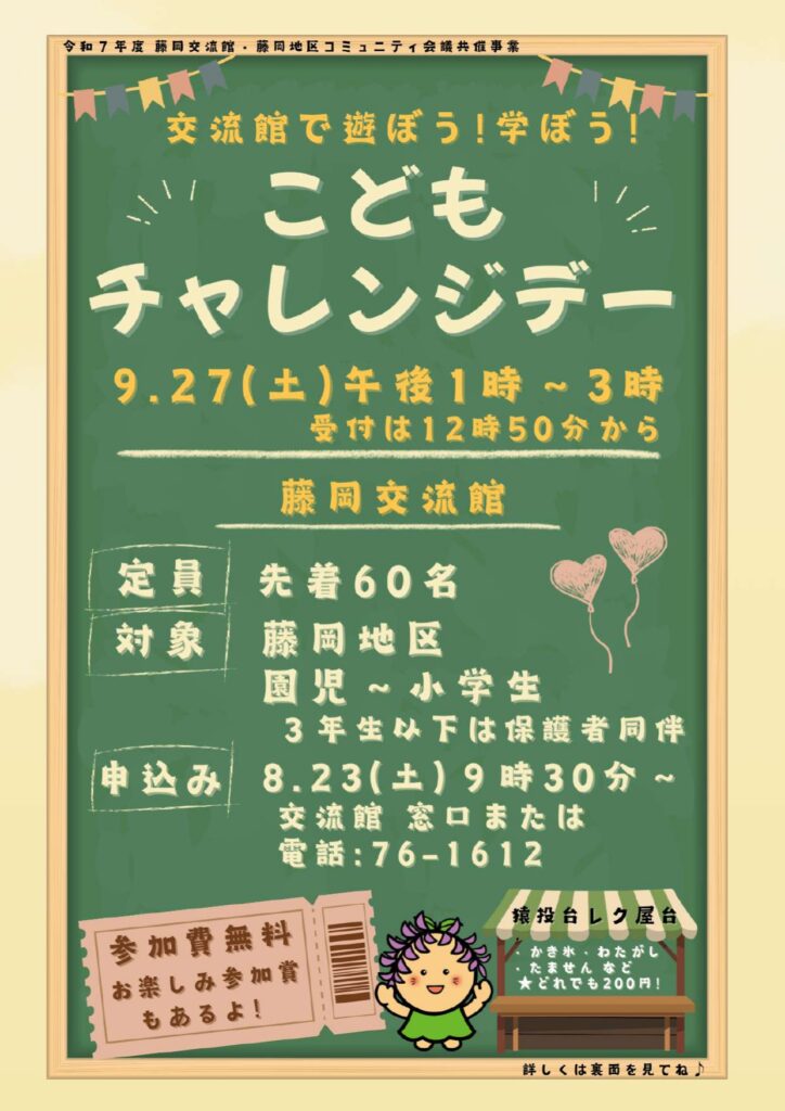 【終了】9/27(土)こどもチャレンジデー ~交流館で遊ぼう!学ぼう!