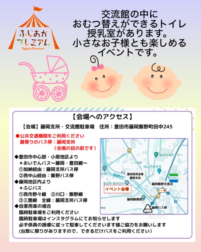 臨時駐車場の台数が少ないため、できる限り公共交通機関(バス)をご利用ください。